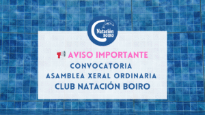 CONVOCATORIA DA ASAMBLEA XERAL ORDINARIA DO CLUBE NATACIÓN BOIRO De conformidade co establecido nos estatutos do Clube, convócase a tódolos