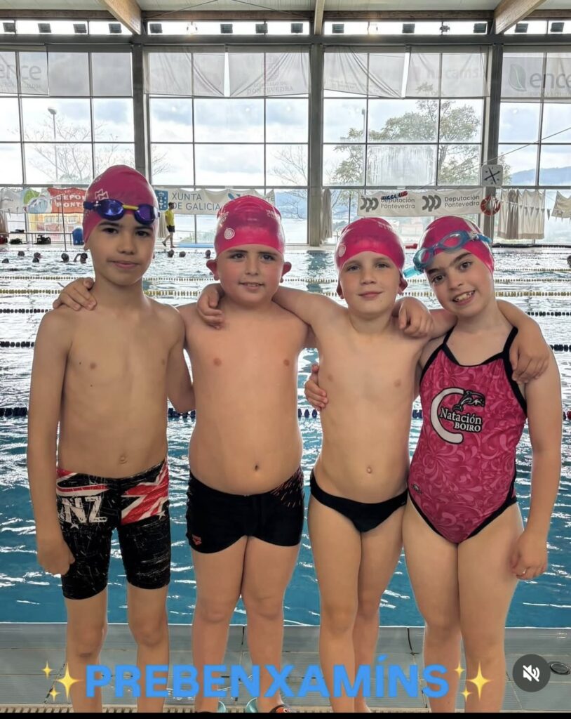 O sábado 10/05 desprazábanse a Pontevedra os máis cativos do club. Os nosos prebenxamíns Erea Carreira, Iago González, Guzmán Chouza e Kike Somoza, capitaneados polas nosas nadadoras Junior-Absolutas Lara Ozores e Candela Sánchez disputaban a última xornada da súa liga. Gran experiencia e xornada de disfrute para os máis pequenos.